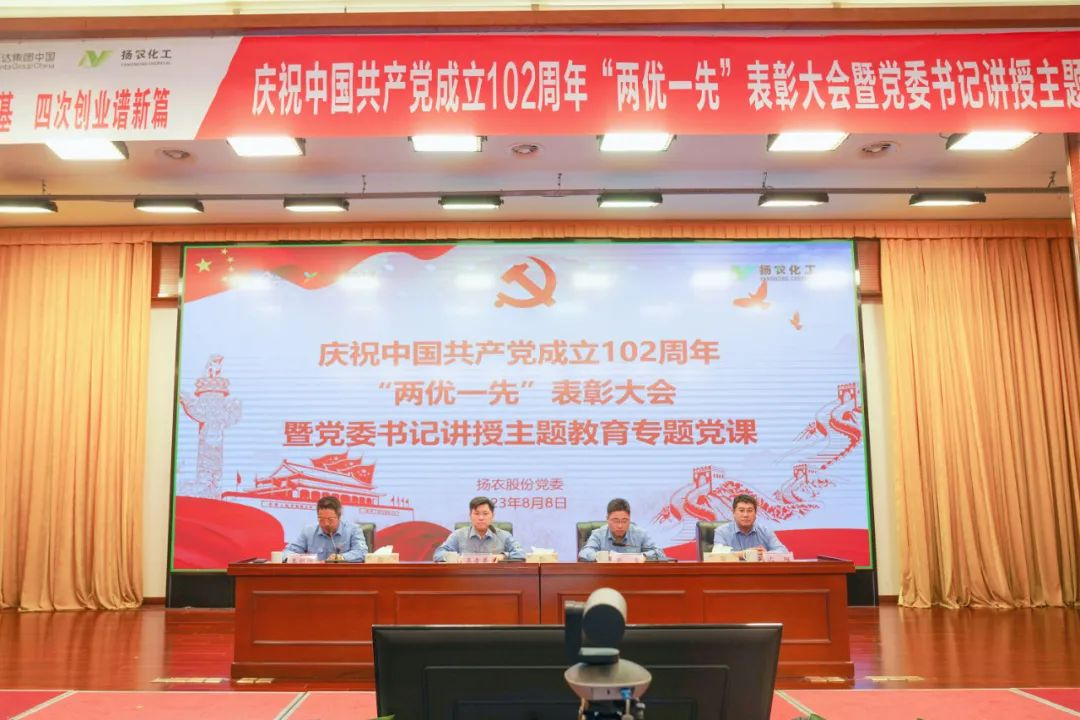 為深入學(xué)習(xí)貫徹習(xí)近平新時代中國特色社會主義思想和黨的二十大精神,8月8日,揚農(nóng)股份召開慶祝中國共產(chǎn)黨成立102周年“兩優(yōu)一先”表彰大會暨黨委書記講授主題教育專題黨課,表彰公司一年來涌現(xiàn)出的先進(jìn)基層黨組織、優(yōu)秀共產(chǎn)黨員和優(yōu)秀黨務(wù)工作者。先正達(dá)集團(tuán)中國副總裁、揚農(nóng)股份黨委書記、總經(jīng)理吳孝舉講述“深學(xué)篤行強(qiáng)黨性 ??實干擔(dān)當(dāng)建新功 ??為建設(shè)最具創(chuàng)新力的中國領(lǐng)先的農(nóng)化公司貢獻(xiàn)力量”主題教育專題黨課。受表彰對象、股份本部及子公司黨政中層及以上管理人員、專兼職黨務(wù)工作者、黨員及入黨積極分子代表等近260人線上線下參加會議。