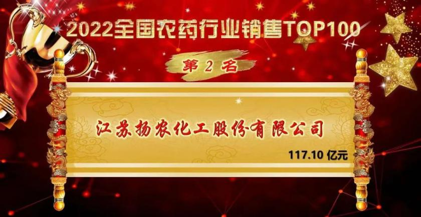 2022年7月7日,2022全國(guó)農(nóng)藥行業(yè)銷售TOP100在第九屆農(nóng)藥行業(yè)經(jīng)濟(jì)運(yùn)行分析會(huì)暨農(nóng)藥行業(yè)名單發(fā)布會(huì)上正式揭曉,揚(yáng)農(nóng)股份以117.10億元銷售額位居榜眼。