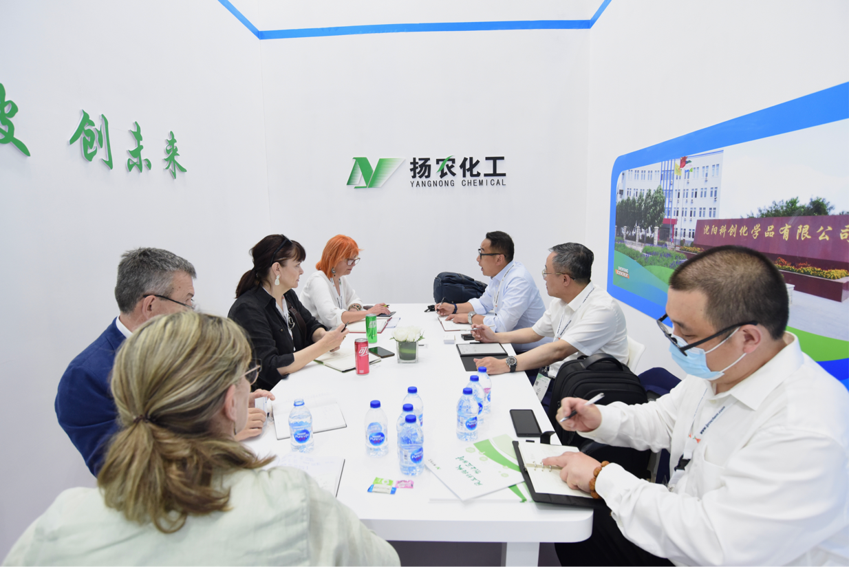展會期間,來自澳洲、歐洲、拉美、非洲等全球各區(qū)域的客戶濟濟一堂,公司業(yè)務(wù)人員與他們就當下全球各大農(nóng)化市場的法規(guī)變化、市場需求、貿(mào)易形勢等進行了深度交流,客戶們對揚農(nóng)“研產(chǎn)銷一體化”優(yōu)勢、“科學(xué)至上”發(fā)展觀和過硬的產(chǎn)品競爭力、品牌影響力給予了高度評價。雙方在深化合作、謀求共贏方面達成了共識,為進一步開拓國內(nèi)外市場,保障企業(yè)在世界舞臺上行穩(wěn)致遠奠定了重要基礎(chǔ)。