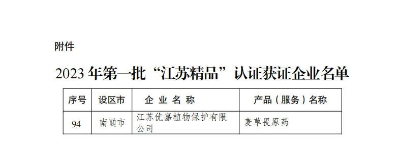 10月27日,江蘇質(zhì)量大會(huì)舉行會(huì)上發(fā)布了2023年第一批“江蘇精品”認(rèn)證獲證企業(yè)名單,我司優(yōu)嘉植保榜上有名!