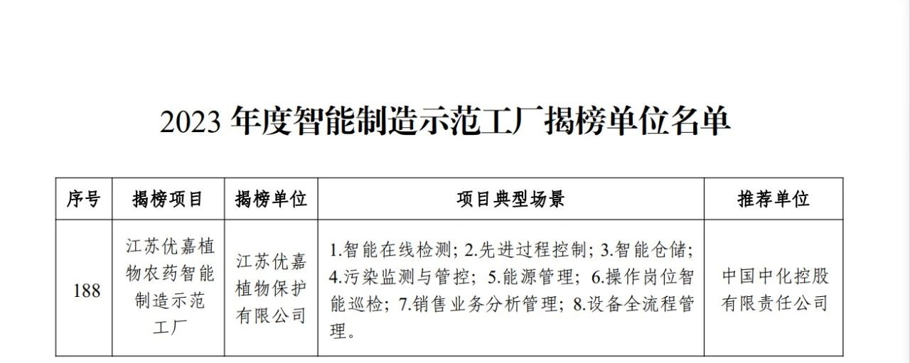 近日,國家工業(yè)和信息化部、國家發(fā)展改革委、財(cái)政部、國務(wù)院國資委、市場(chǎng)監(jiān)管總局五部門聯(lián)合發(fā)布2023年度智能制造示范工廠名單,子公司優(yōu)嘉植保榮膺榜單。