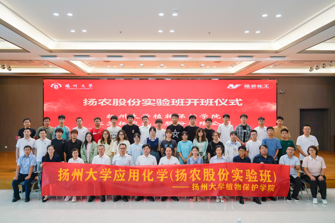 ? ? ? ?為促進(jìn)產(chǎn)學(xué)研深度融合,培養(yǎng)更多符合企業(yè)需求、具備實(shí)戰(zhàn)能力的“植保+應(yīng)化”新農(nóng)人才,實(shí)現(xiàn)校企雙方合作共贏,9月20日,我司與揚(yáng)州大學(xué)合作辦學(xué)的應(yīng)用化學(xué)專業(yè)(揚(yáng)農(nóng)實(shí)驗(yàn)班)在我司舉行開班儀式。揚(yáng)州大學(xué)黨委常委、副校長王承堂,公司黨委書記、總經(jīng)理吳孝舉出席活動并講話,公司副總經(jīng)理、植保研究院院長姜友法為活動致辭。