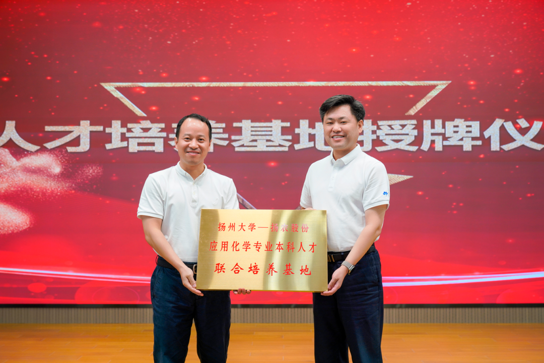? ? ? ?隨后,王承堂為揚(yáng)農(nóng)股份人才培養(yǎng)基地授牌。揚(yáng)州大學(xué)植保學(xué)院黨委書記侯燕為揚(yáng)農(nóng)股份實(shí)驗(yàn)班校外導(dǎo)師、聯(lián)培班主任頒發(fā)了聘書。