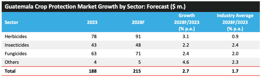 ? ? ? ?危地馬拉的農(nóng)藥市場在 21 世紀的前二十年持續(xù)增長,但此后趨于穩(wěn)定。危地馬拉的農(nóng)業(yè)重點已轉(zhuǎn)向種植用于出口的經(jīng)濟作物,農(nóng)藥市場增長的放緩與這些商品價格低迷的時期相對應。