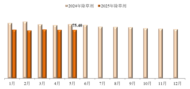 ? ? ? ?5月,除草劑價(jià)格指數(shù)為75.40,環(huán)比上漲0.31%,同比下跌10.44%。監(jiān)測(cè)在內(nèi)的47種除草劑產(chǎn)品中,加權(quán)平均成交價(jià)格環(huán)比上漲的19種,環(huán)比下跌的27種;加權(quán)平均成交價(jià)格同比上漲的9種,同比下跌的34種。