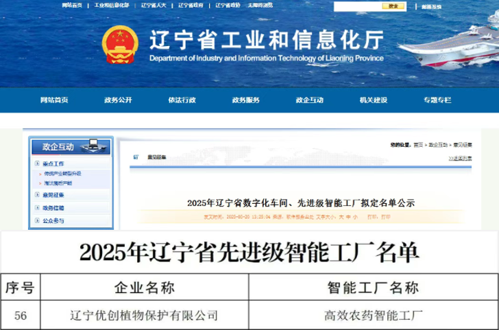 ? ? ? ?近日,遼寧省工業(yè)和信息化廳發(fā)布《關(guān)于2025年遼寧省數(shù)字化車間、先進(jìn)級(jí)智能工廠名單的公示》,揚(yáng)農(nóng)化工優(yōu)創(chuàng)植保生產(chǎn)基地榮膺榜單。